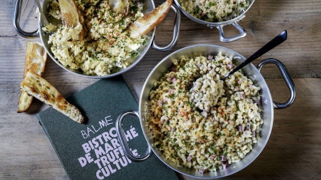 Bonjour Davide, merci d'avoir partagé votre expérience parmi nous. Nous sommes ravis que vous ayez apprécié nos plats délicieux au cœur de Nîmes! Nous prenons note de votre retour sur la langue et ferons de notre mieux pour nous améliorer sur ce point. Votre satisfaction est notre priorité. À bientôt chez Balme Nîmes! 🍄 L'équipe Balme Nîmes 🍄