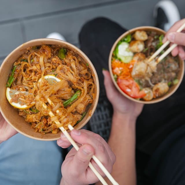 - Plat chaud (bobun, pad thai ou miprat poulet) x2 nems ou x2 samoussas, compris avec une boisson