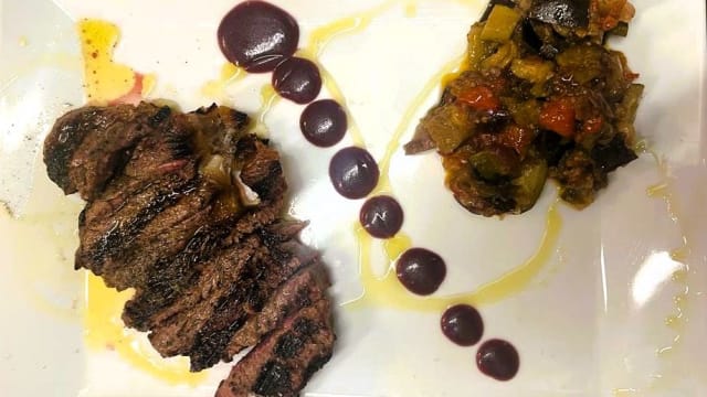 Filetto di vacca selezionata, tenero e succoso, servito in tagliata con riduzione di chianti rufina "rubinato" e acini freschi di uva sangiovese