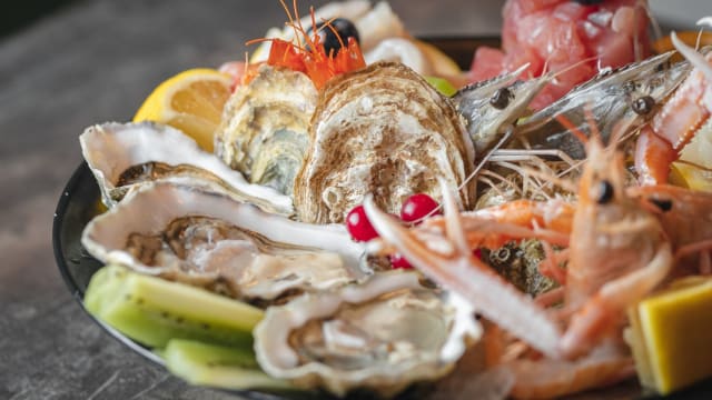 Crostacei freschi con verdure croccantl frutta di stagione e profumo d'agrumi con un preavviso di 24 ore la possibilità di aggiungere astice