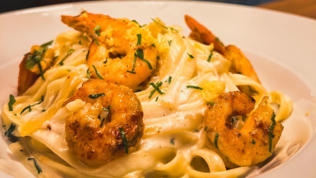 Fettucine de camarão com natas e limão