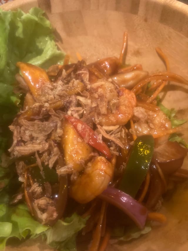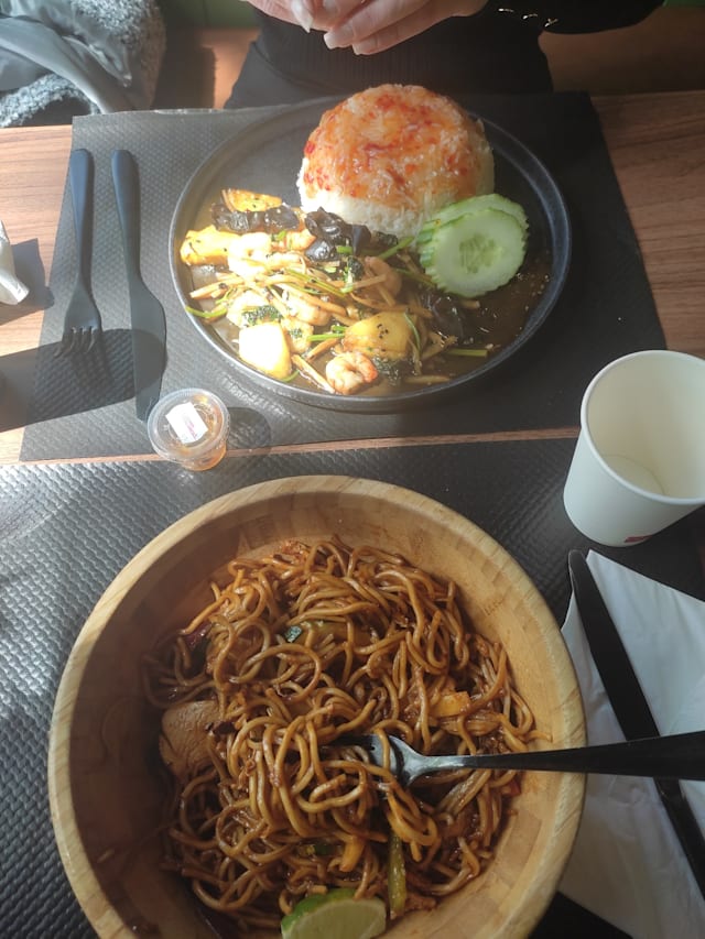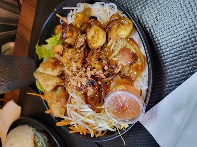 Viande au choix : poulet, boeuf ou crevettes.