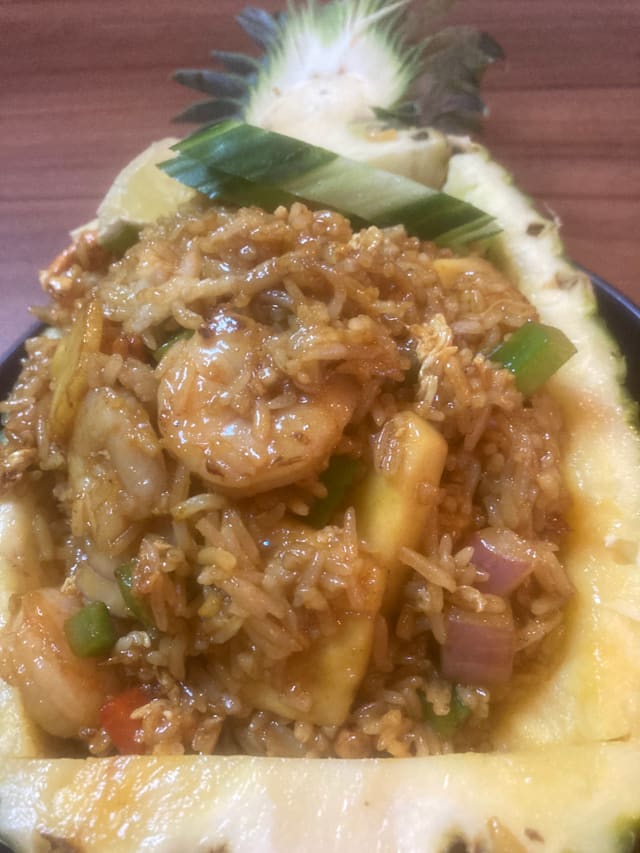 Riz sauté aux légumes, à la sauce thaï.