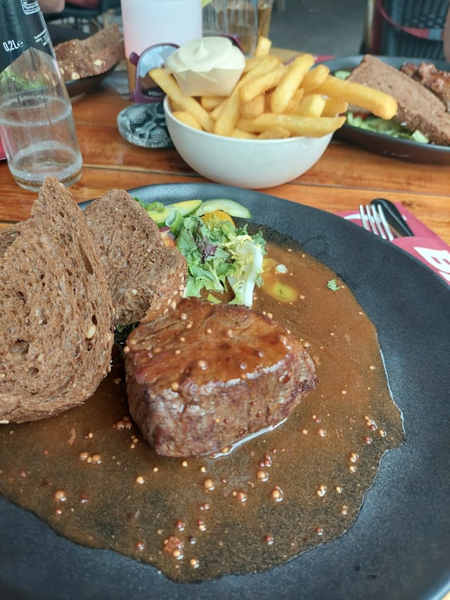 8/10We had a vieuw at the kitchen when the door gets open and we saw a mess. It looks not very hygienic, there where mops at the floor e.d. So the first impression at the kitchen was not so good. Service, food , kindness of the employees were very good !