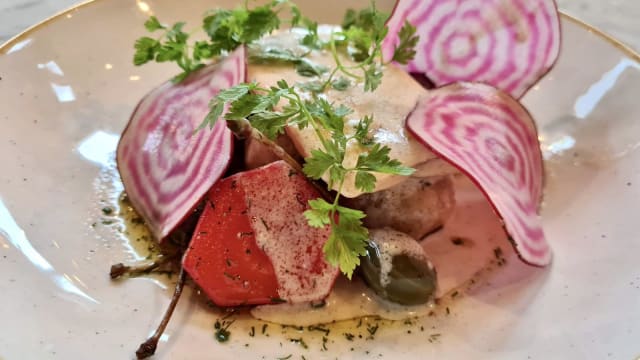 Explore the chef's selection menus with diverse dishes at fixed prices. Some are bookable via TheFork, while others are available onsite.