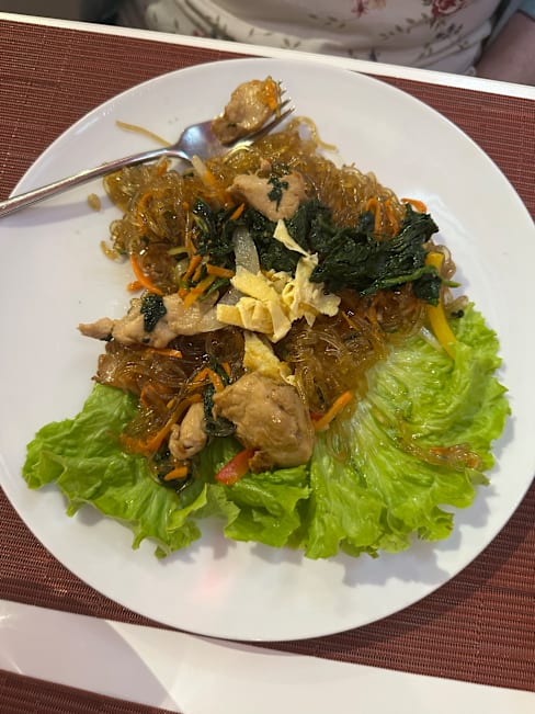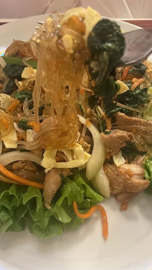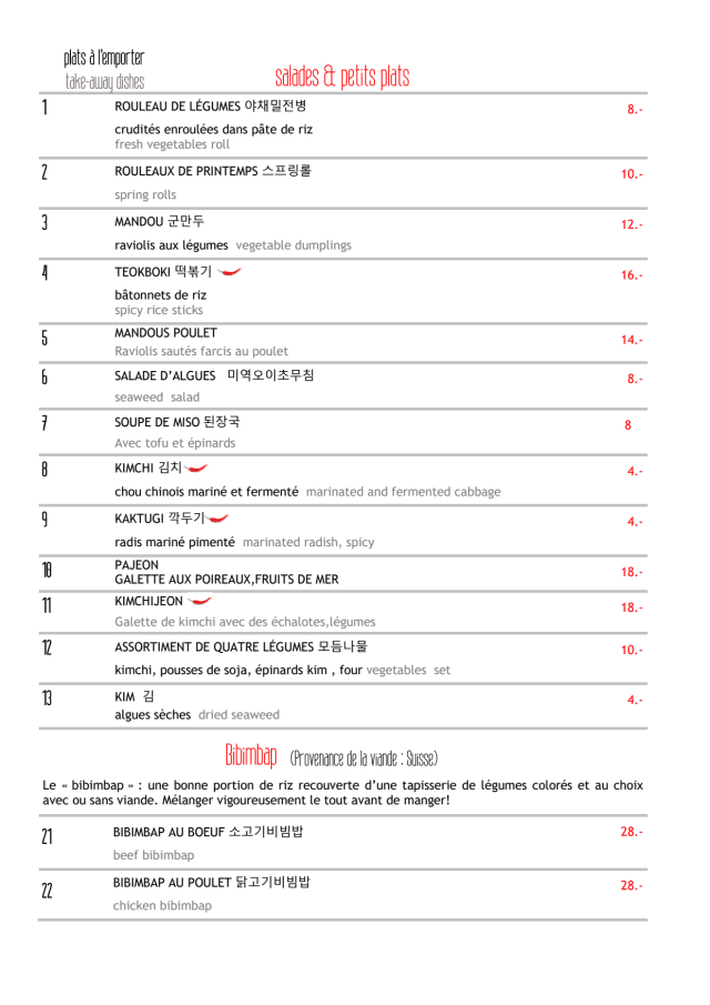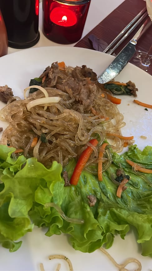 7/10My choice of fried spring rolls (starter) and the main course of spicy pork were very tasty. However, I was disappointed that there was no side serving of Kimchi with this dish. My friend enjoyed the raw spring rolls (starter) and the menu of the day, which was much less expensive than my à la carte choice and included as sides both kimchi and edamame. The room downstairs is very noisy at lunch time.