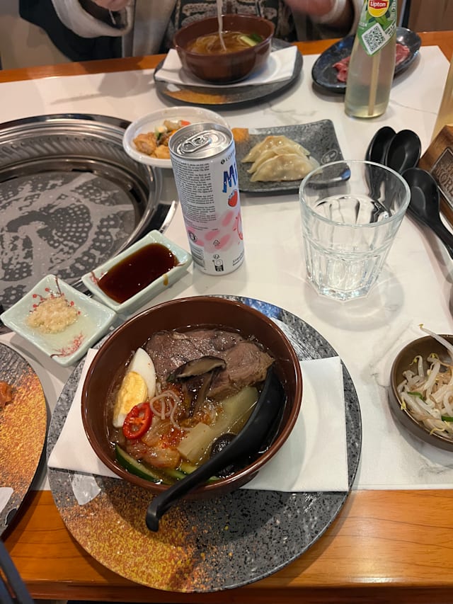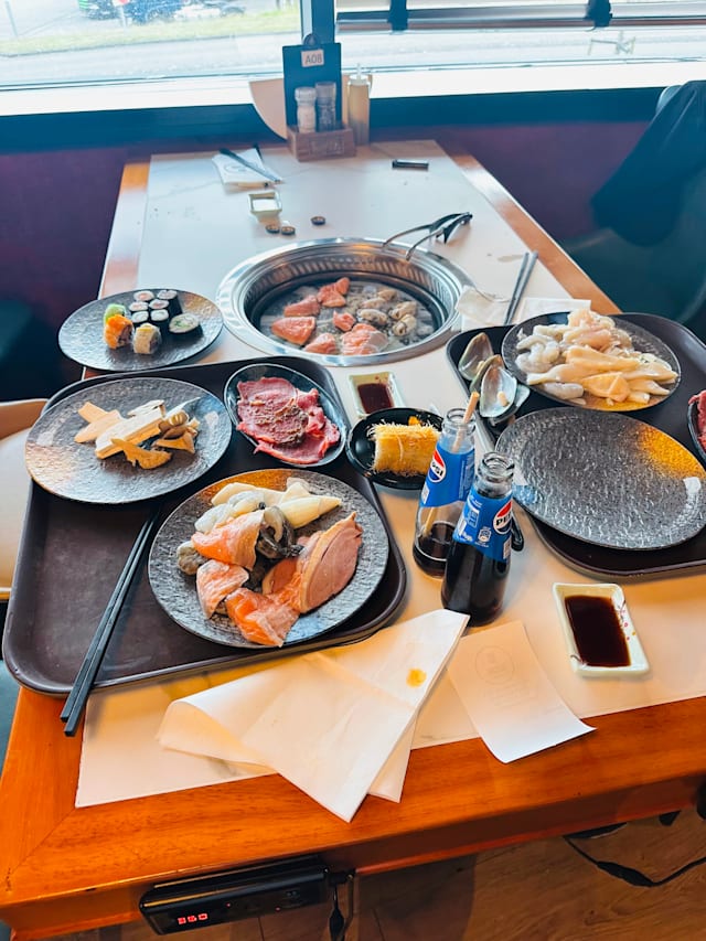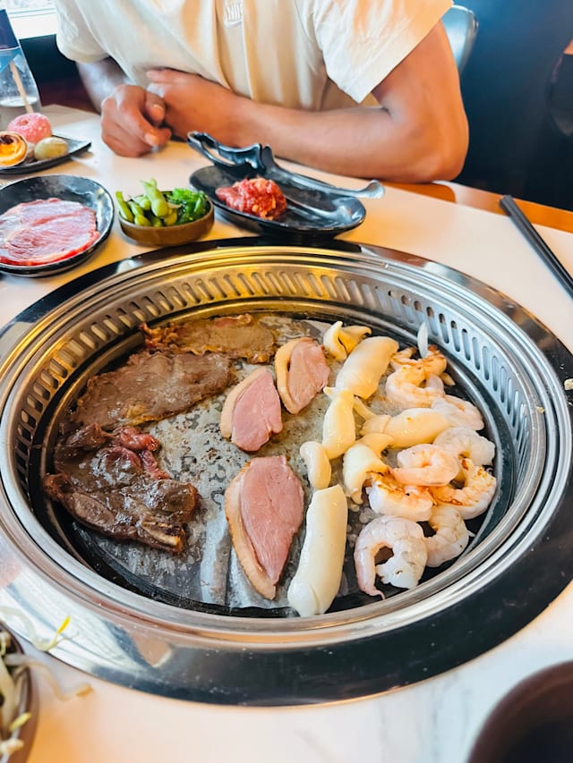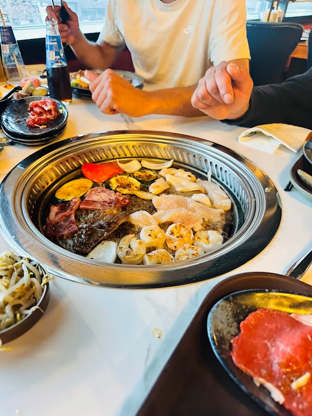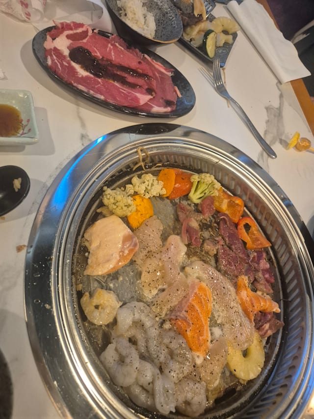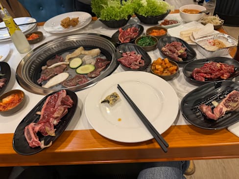 9/10Service was really friendly. They quickly took away the trays and changed the parchment paper soon after we asked. Galbi was a hit or miss. Some pieces were really juicy and tender, some were kinda tough. Seasoned sliced beef was very nice though. Overall I think it was worth it. Will definitely come back????