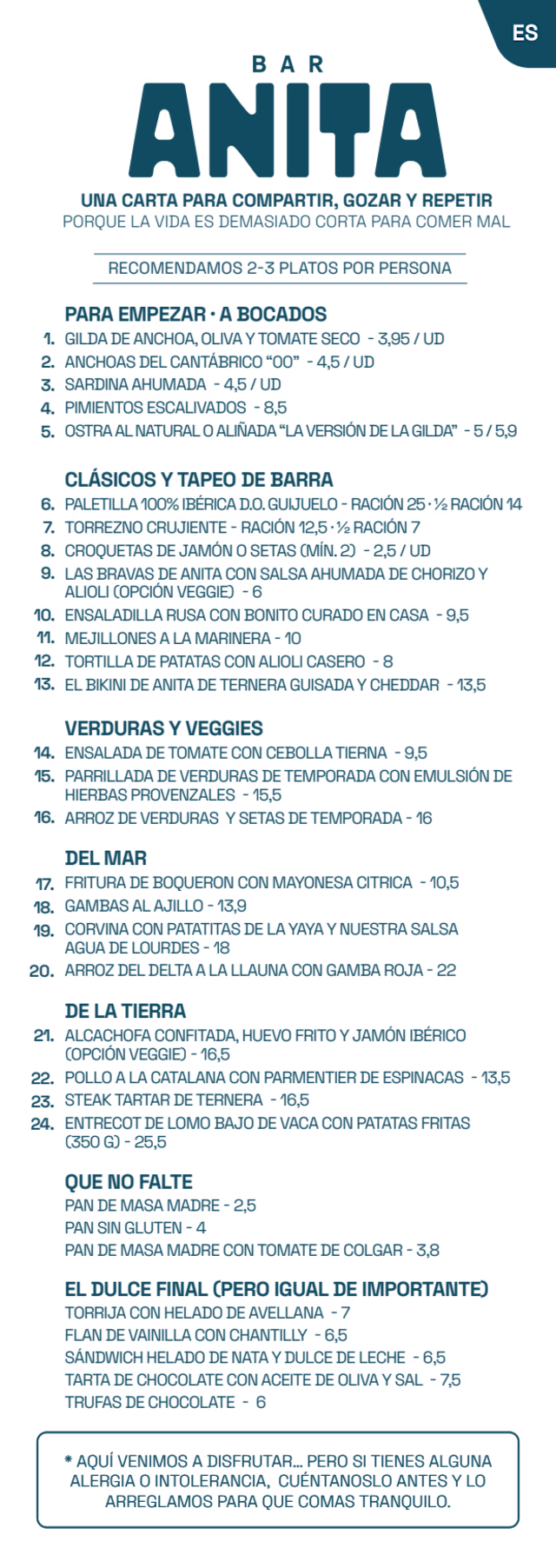 We had lunch at Anita Flow after a long walk around the city. We came earlier than the time for our reservation. We were warmly welcomed and we could choose a table. The waiter was very attentive, the service and the wine recommendation were great. The menu is digital, very easy to navigate. The food is carefully selected and with excellent quality. We had oysters, garlic prawns, fish & chips, cheeseburger together with a bottle of Abadal picapoll 2023. Perfect!