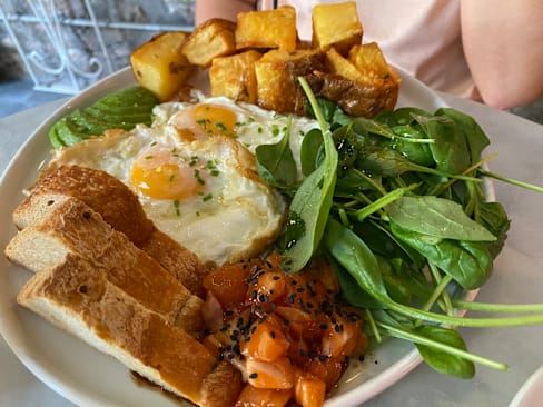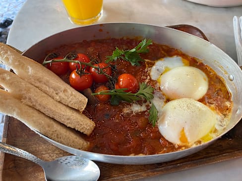 8.5/10Food was really good, they know how to dry an egg :) but, not a good experience bc of our server. we got a server that was a “no” man…everything we asked him was an automatic “no”…. For example: “I see you have apple, orange and carrot juice…can I just have apple for my son?” NO ; “can I get just a side of bread for my 2.5 year old son?” NO…. Etc.he wasn’t friendly and just not the job for him. We ended up getting the side of bread and a plain carrot juice , so it seems the other staff is very friendly. Would go back again and just pray we don’t get the same guy :)