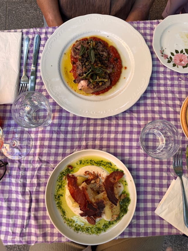 8/10Food was ok, well presented but nothing special in flavour. Friendly service, good terrace, plenty of space under the trees.