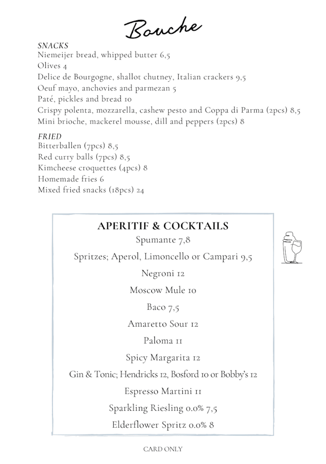 10/10Good food and atmosphere. The 'you don't want to miss' dishes: mackerel mousse brioche, pompoen, kalfsribeye and sticky toffee cake.