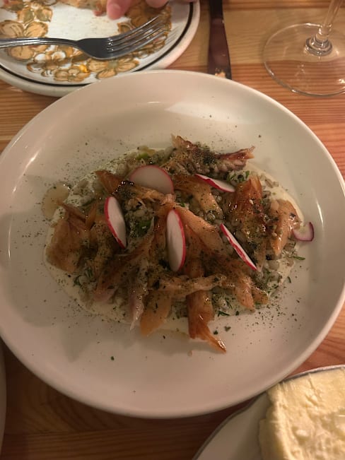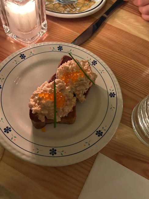 10/10Very nice time. Enjoyed both ambiance and food. We tried different dishes and bites as the small dishes (they precise the sizes : bites / small / big) are easy to share. Each plates was nicely presented and tasteful. My favorites were the mini brioches and the labneh. I also really liked the leeks. Location is great. Was scared that it was too close to the road, but the outdoor tables are well separated with some plants. Even forgot about the road at some point. And, last but not least, service was great. Appreciated to have someone joyful and nice. Cheers to Tim according to the bill. As global review; Good time, will come back.