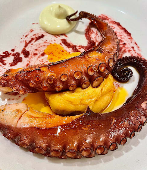 9.5/10The food was incredible, from the potato with Jamon and cheese Tapas, passing through the octopus with potato and alioli and finishing the main courses with an oxtail that was super tender and delicious! For desert the chocolate coulant with orange and vanilla cream was perfect to finish the meal. A really wonderful meal for 2.