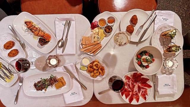 10/10Sometimes, the best discoveries are right under your nose. For some time now, Bar Costa on Joaquin Costa street has been that intriguing spot I've passed countless times here in Barcelona, always admiring its immaculate decor. Well, the stars finally aligned, and it was a treat worth waiting for. From the moment we walked in, the welcome felt genuinely warm from the owner, and the service was nothing short of prompt and friendly. Bar Costa specializes in small dishes. We opted for four plates, and one was so utterly sublime – the seared scallops on smashed potatoes with hollandaise sauce – we ordered it twice! Their Costa Sangria was exactly to our liking. Usually, dessert is an afterthought, but we indulged. The white chocolate cake with maracuja sauce was a delightfully delicious finale. The ambiance is a masterpiece: warm decor with velvet curtains creates an intimate setting. The music adds to the mood without being a barrier to conversation. We will be back!