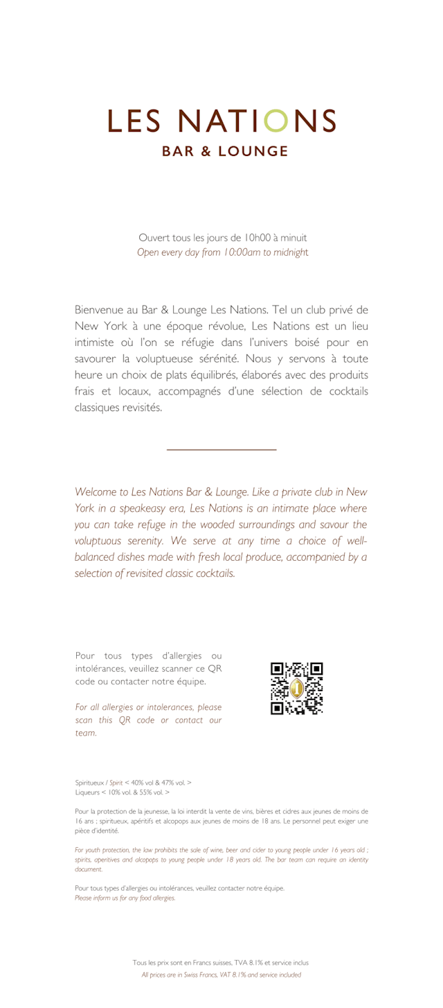 Bar et Lounge Les Nations is identified as offering international cuisine.