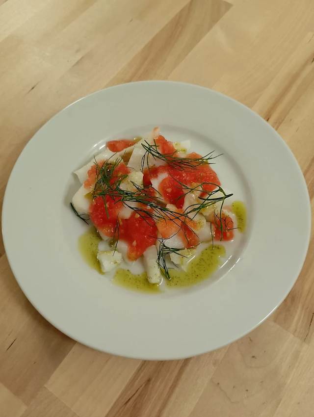 - (Pepino, crema agria, hierbas, limon)