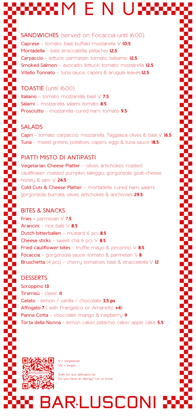 Ciao Menno, Thank you for your kind words! We’re delighted to hear you enjoyed our friendly service and good food – it means a lot to us. We hope to welcome you back to BAR.LUSCONI soon for another great experience! Ciao for now & a presto, Famiglia Lusconi