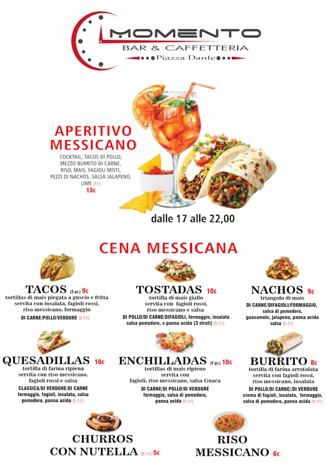 Bar Momento Cucina Messicana is identified as offering mexican cuisine.