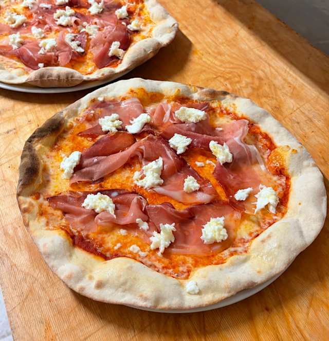 - (Mozz, crudo, zucchine, scaglie di grana)