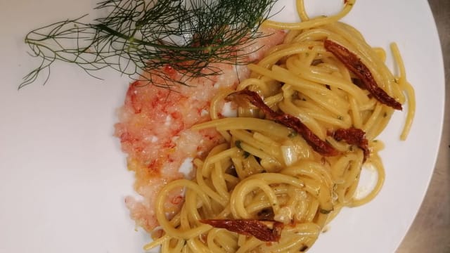 spaghetti vongole bottarga e friggitelli