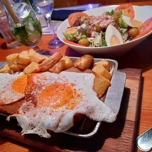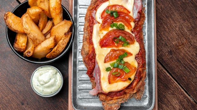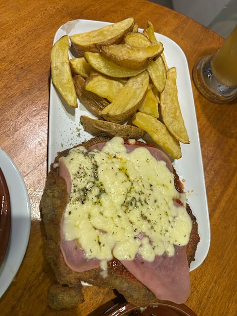 6.5/10although it was touted as an Argentine restaurant, ( my husband being Argentinian), it disappointed as it was more of a sports bar with a handful of TV screens, an extended menu of beers ( except no non- alcoholic beer). The empanadas were fine, salad Valenciana as well. They advertised a multitude of Milanesas, but didnt have any Milanesa de pollo only Ternera. A bit tough. We saw on menu that they came with French Fries, the perfect accompaniment but instead we were served roasted potatoes that tasted a bit stale.