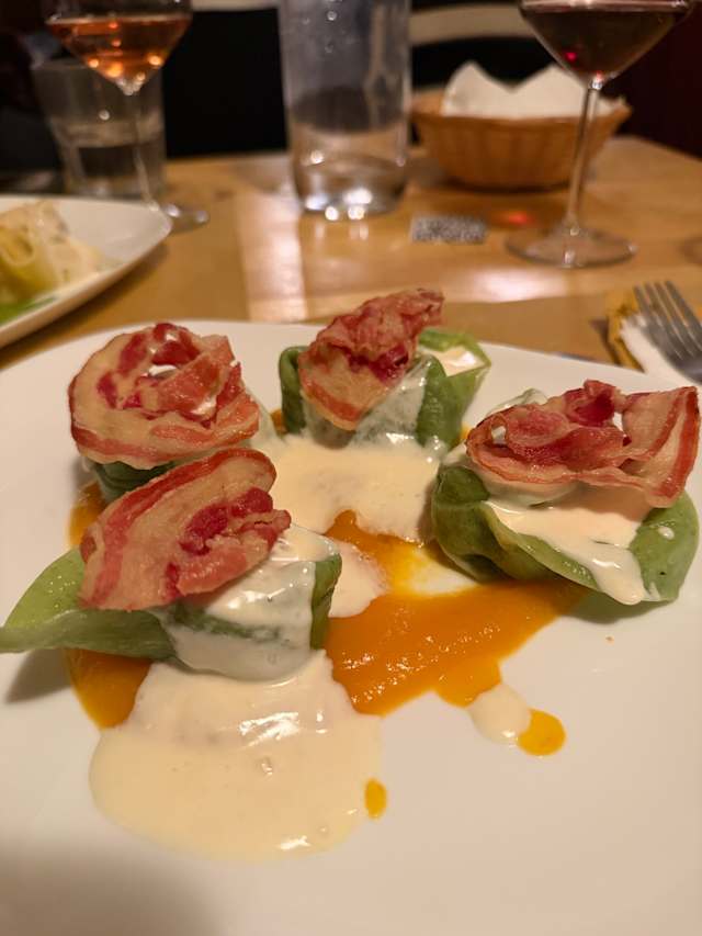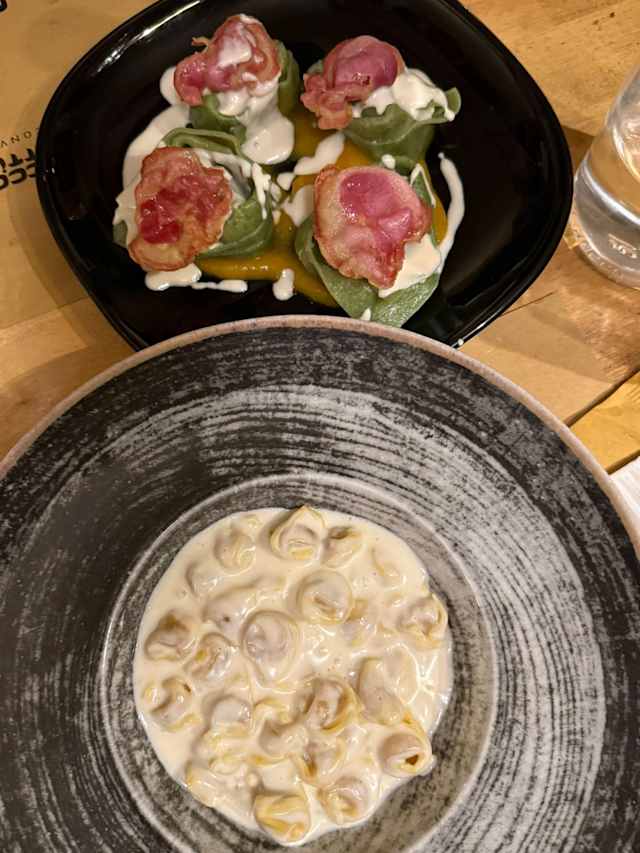 6.5/10I've had fresh pasta many times and this was VERY AVERAGE. In fact the Bolognese sauce was terrible, dry and little flavour. The tomato sauce was ok but nothing special and the tortellini were mixed with too many flavours so I didn't enjoy it. Quite expensive considering we only had pasta dishes, water and one starter. Won't be going back again.