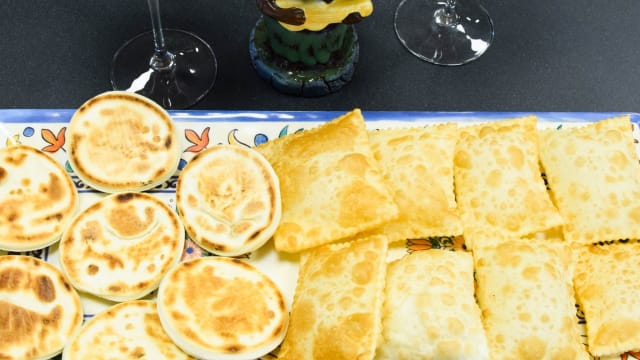 A persona gnocco fritto (6 pz.), crescentine (6 pz.), salumi e formaggi misti, pesto montanaro di nostra produzione,parmigiano reggiano