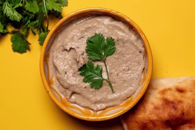 - Huile d'olive au citron pressé, courgettes, aubergines rôties, pommes de terre rôties au paprika, persil, oignons pickles, champignons sautés au soja, olives, poivrons, crudités