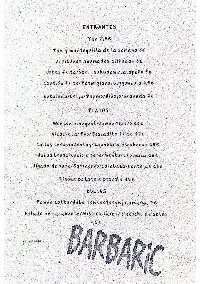 Barbaric es un proyecto gastronómico ubicado en el barrio de Patraix, en Valencia. Nació a finales de mayo de 2024 de la ilusión de Alex Sánchez y Julia Dewald.
