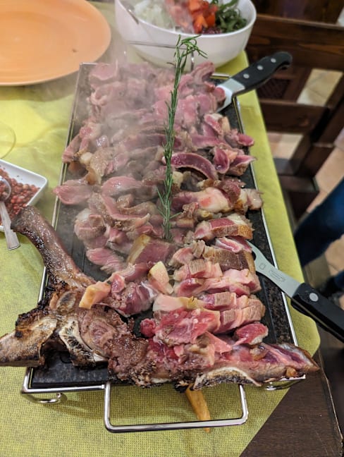 2/10We love meat and seeing the selection, thought we would would enjoy our evening. The beautiful steak was served on a plancha, cut in tiny slices, that you would find in a Thai restaurant mixed with rice and spices... (The lower part was obviously too cooked too quickly, while the upper part was left cold and red. The placha got cold quickly so you have a mix of too cooked and not enough cooked slices in your plate.) The end result was a carpaccio of meat full of water, rather than the taste of good meat one was expecting. Additionally, the red wine was warm, grilled vegetables "for two" were mere cold slices of cabage for one, "home made mushrooms" the same color you would find in a can in your local grocery shop without any effort of cooking or taste. Bitter experience: expensive, the cook didn't bother to talk whilst knowing we were disappointed, no client effort made to offer us something to keep us somewhat happy. If you appreciate meat, this is NOT the place to count for a good BBQ, your stomach and wallet will be disappointed!!! Great meat slices, but a mere disappointment of its cooking methods.
