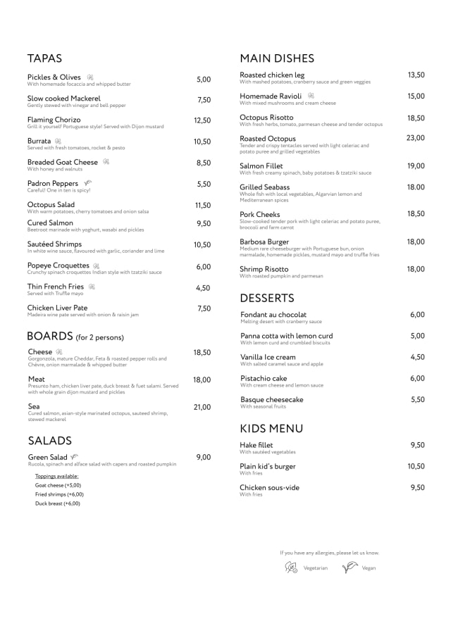 10/10We love eating at Barbosa, great food, setting and value for money.