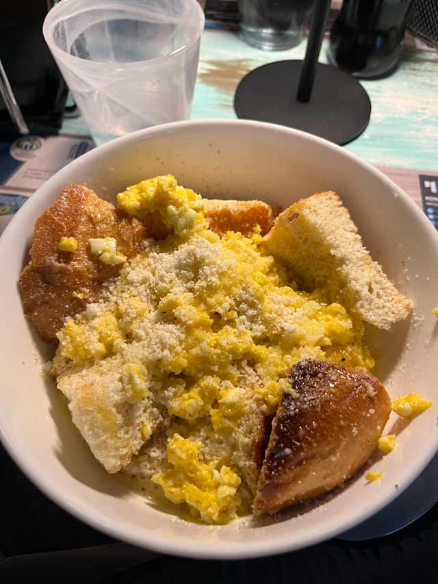 - Polenta di mais rosso*, burro di malga*, pecorino d.o.p, uovo al ciareghì, scaglie di tartufo nero*.