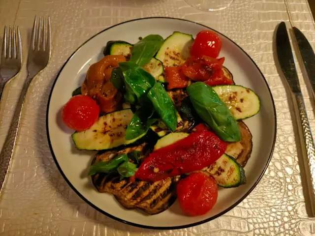 - Tomate, mozzarella, légumes de saison, aubergines et grana padano