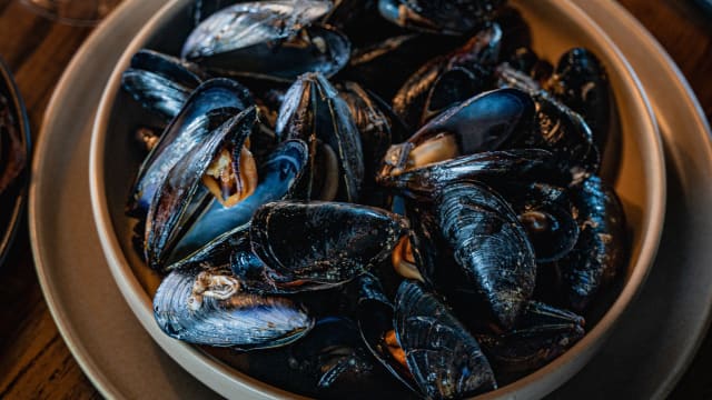 Cozze cotte nel josper, salsa al josper dal sapore leggermente affumicato per un piatto con carattere.