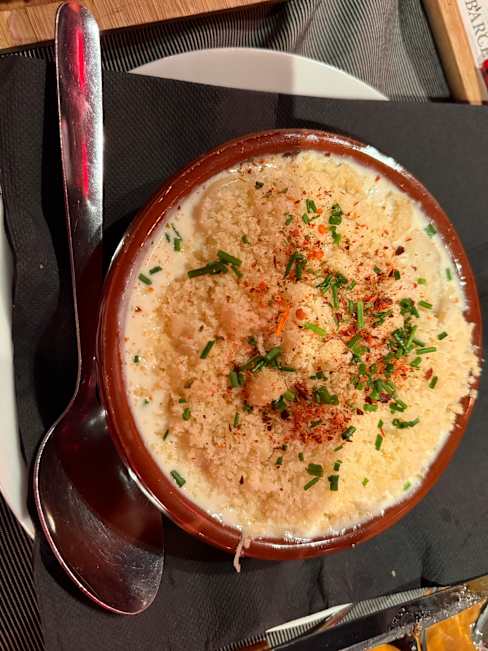 10/10If you’re looking for a great meal in Barcelona, this is the spot! The staff were super friendly and welcoming. My husband and I shared a dish since the portions are huge. Definitely save room for dessert the pudding with caramelized chocolate was amazing, my husband had the flan and also mentioned it was delicious.