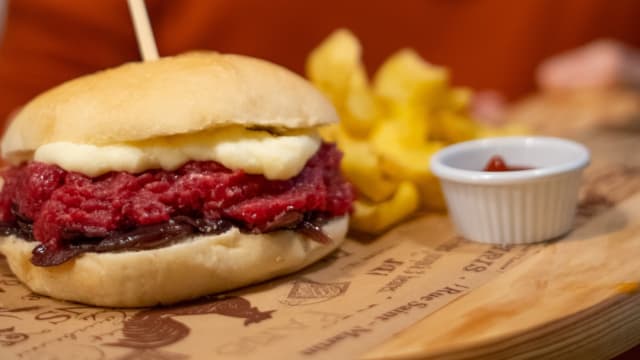 Burger di cavallo 180 gr, mayo, capperi e cipolla