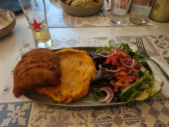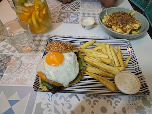 5.5/10The appetizers were great. Then it became bad. The main course wasn't fair at all. I've ordered the stake. My friend ordered a different one. We have received a dry old fries. After complaining, they gave us a new one in which you could see clearly the difference. I don't care to pay prices higher than the standard. It's an amazing location, but come on, respect us with fair food.