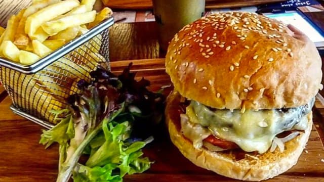 10/10Fabulous lake view in atrium and inside a log fire was burning. Friendly service- good range of beers and food excellent. Jalapenos stuffed with cheese as starter and chilli mayonnaise to dip, excellent and lamb shank (souris d'agneau) large and nicely cooked.