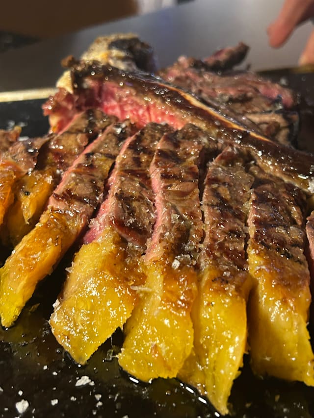100g di Carne con la massima marezzatura, dal sapore intenso, servita su “Pietra” di Sale.