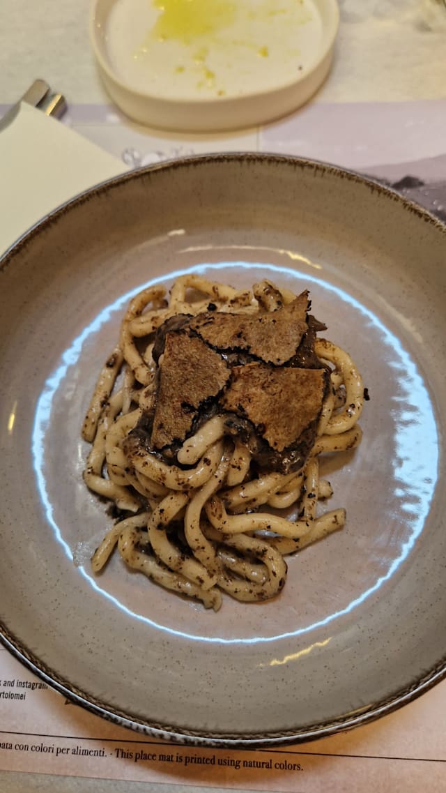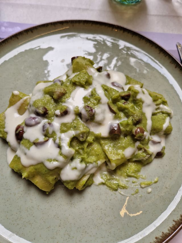 Fabulous food in a charming location with great service. It was our first lunch in Italy after an overnight flight and 2 hour drive. So happy we stumbled onto it. The town surrounding it atop the hillside is so picturesque too.