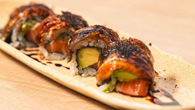 Con langostino, pepino, aguacate y salsa ponzu. 4 piezas
