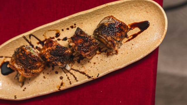 Aguacate, brotes, wagyu y foie flambeado. 4 piezas