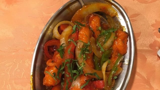 Cordero cocinado con cebolla, hierbabuena, especias indias y salsa semi seco