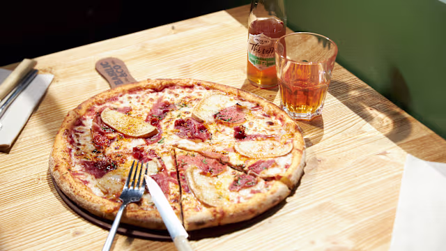 - Crème, mozzarella fior di latte, champignons bruns de Paris, jambon blanc salaison guêze, brie de meaux AOP et moutarde à l'ancienne au miel français.