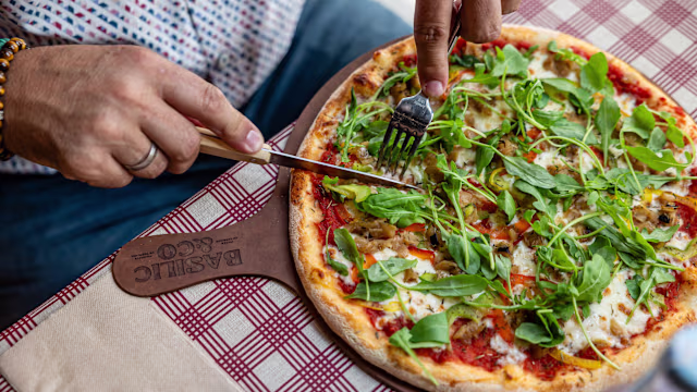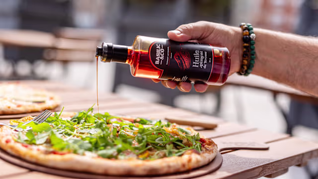 - Sauce tomate, mozzarella fior di latte, jambon sec d'ardèche IGP, ossau-iraty AOP, piment d’espelette AOP et ciboulette fraîche.
