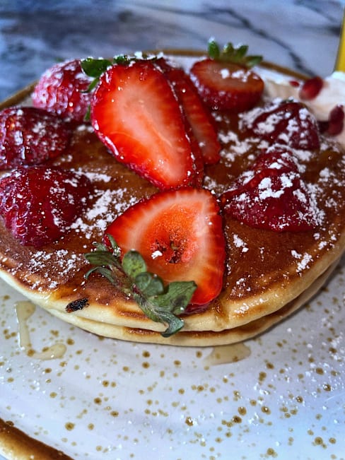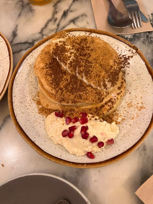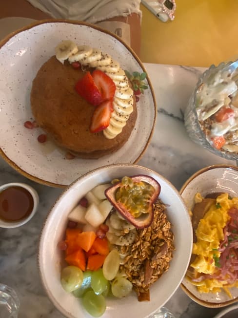 10/10Yummy yogurt bowl and fresh squeezed orange juice. Vegan banana oat pancakes were crispy with cinnamon and fluffy at the same time.