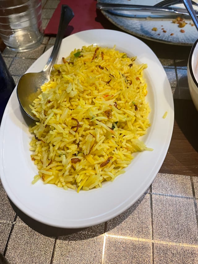 4/10I recently dined at this restaurant and was quite disappointed with my experience. Upon arrival, I was promptly seated, but soon after, my seat was reassigned to accommodate other guests. This lack of respect for my boundaries was off-putting, but I decided to stay as I was very hungry. I ordered the vegetable samosa and lamb biryani. Unfortunately, my server left before I could complete my order, leaving me unable to request a bottle of water or any drink. The vegetable samosa was clearly bought from elsewhere and fried on-site, resulting in a subpar taste—2.0/10. The lamb biryani was equally disappointing, with inconsistently cooked meat that was sometimes medium and other times undercooked and smelly. I ended up leaving some of the food uneaten and paid my bill responsibly before exiting the restaurant. Overall, the service, food, and ambiance did not meet my expectations. In the end I don’t know how this restaurant had this much rating.