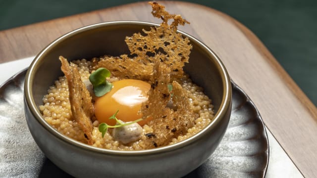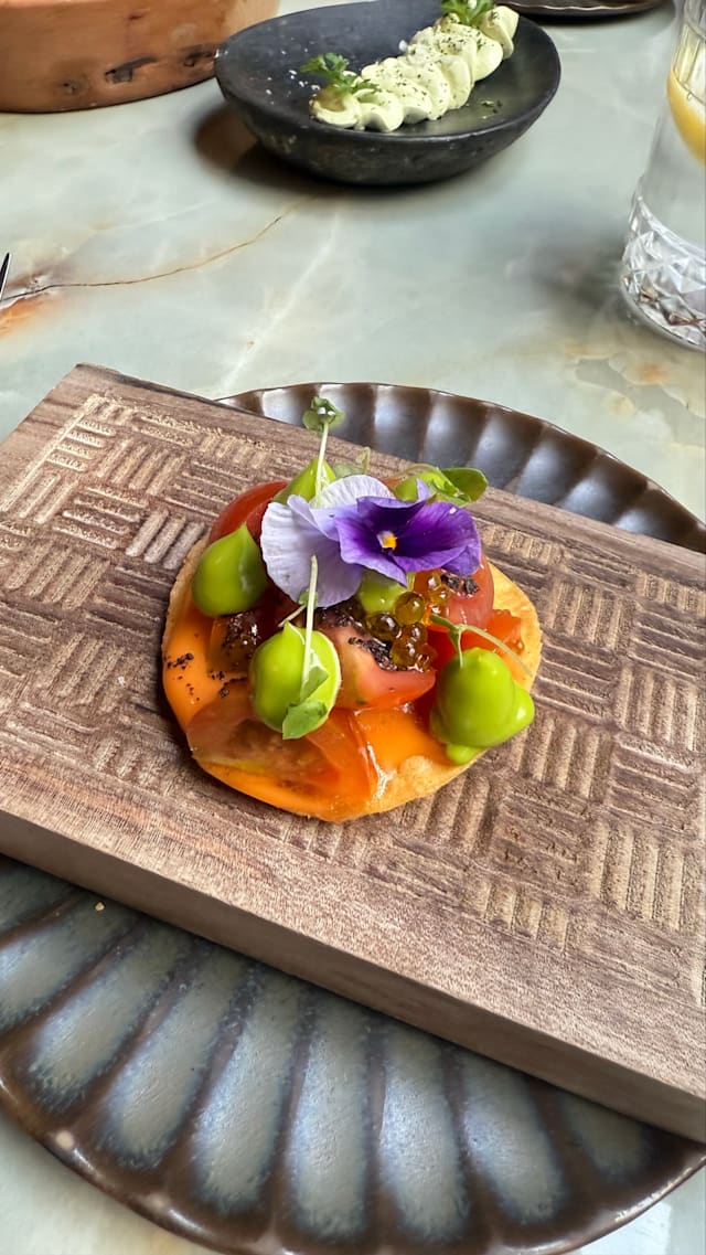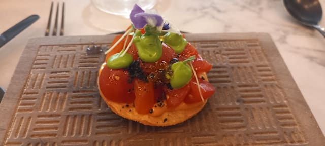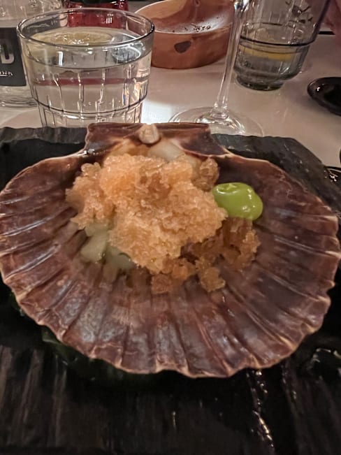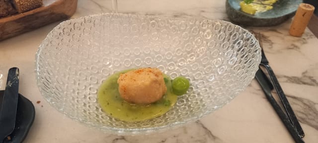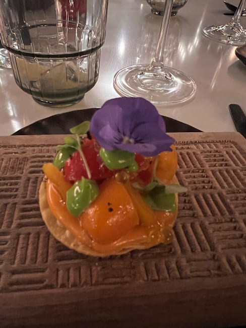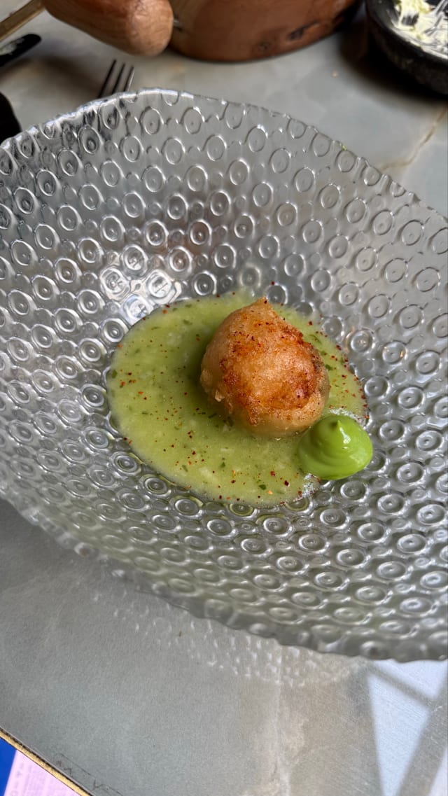 6.5/10We went for dinner with friends having heard the hype around it, however I would say it is rather overrated. There was no vibe or ambiance at all, with very loud almost party music playing in the background which is not appropriate for a dining experience. At first, we waited for 10 mins to be seated at the entrance of the restaurant, the service was average and rather slow for a five course tasting menu. Wine menu was quite poor, the brands that you may find anywhere, very commercial names like Marques de Riscal and Beronia- being a restaurant belonging to a Michelin starred chef, I would have expected a more authentic wine selection. The tasting menu was good in terms of taste and quantity if only the service wasn’t that slow. No storytelling from the waiters about any dish or even why they are serving it. All in all, the impression I got from the restaurant was it is using the name of the famous Basque chef however the food nor the ambiance or service were anything near exquisite. I would not repeat this restaurant, it is very much overrated.