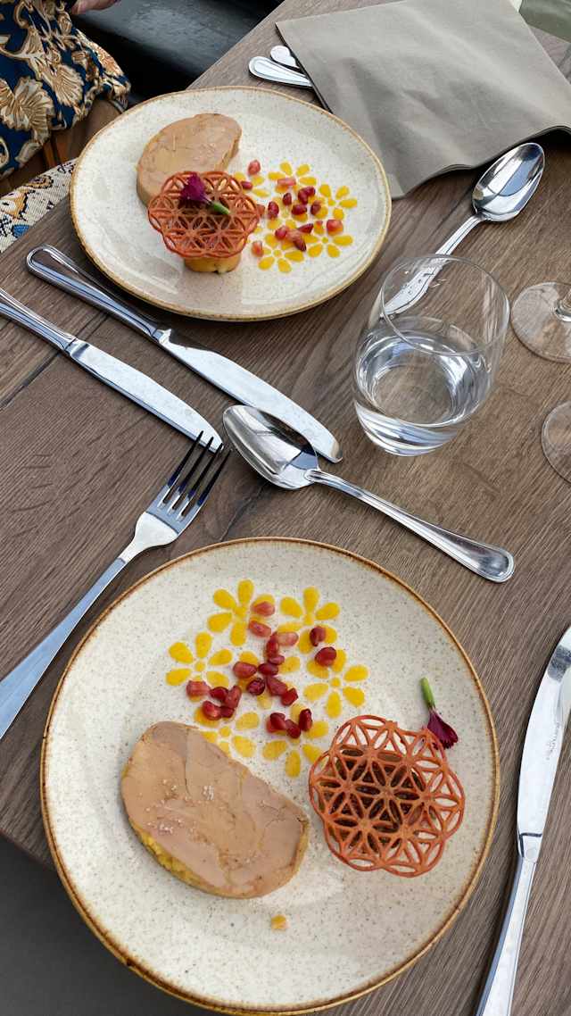 6/10We weren’t aware that soft drinks and water weren’t included in the dinner price—only fish or chicken are covered. Choosing steak meant an extra cost. As a family of four, we ended up paying an additional €80 for drinks and beef. The steak was tough, and when we asked the server which cut it was, he just repeated “steak” and didn’t seem to understand. Overall, the food and presentation were good, and my family enjoyed the scenery and live singer. However, our rating was lowered due to a dirty spoon on the table. When we returned it, the server swapped it silently—no apology—and then asked for a tip when presenting the bill. The reservation advised a 6:45 pm start, but we arrived at 6:15 and were served at 6:30—we were glad to be early. The ambiance was nice, and I’d book again now that I know what to expect.