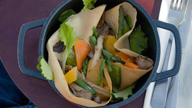 Explore the chef's selection menus with diverse dishes at fixed prices. Some are bookable via TheFork, while others are available onsite.